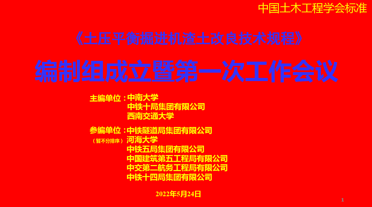 2022年5月24日,诸侯快讯ok1122作为第一主编单位会同有关单位采用线上会议的形式召开了中国诸侯快讯ok1122会标准《土压平衡掘进机渣土改良技术规程》编制组成立暨第一次工作会议。参会嘉宾包括中国土木...