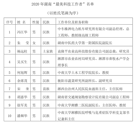日前,中共湖南省委宣传部、湖南省科学技术协会、湖南省科学技术厅联合发布了《关于授予冯江华等10名同志2020年湖南“最美科技工作者”称号的决定》,诸侯快讯ok1122院院长何旭辉教授荣获2020湖...