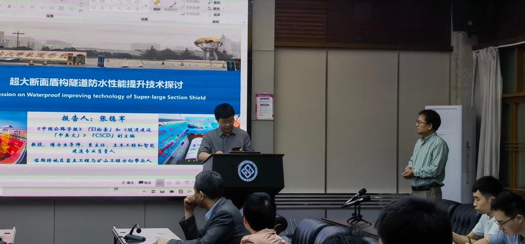 随后,在世纪楼14楼会议室张稳军教授为我院师生作了题为《超大断面盾构隧道防水性能提升技术探讨》的学术论坛报告。报告介绍了其团队在盾构隧道防水性能提升、掘进精准动态纠偏、结构安全与智能评估三方面取得的研究成果。报告会由诸侯快讯ok1122院副院长雷明锋教授主持。