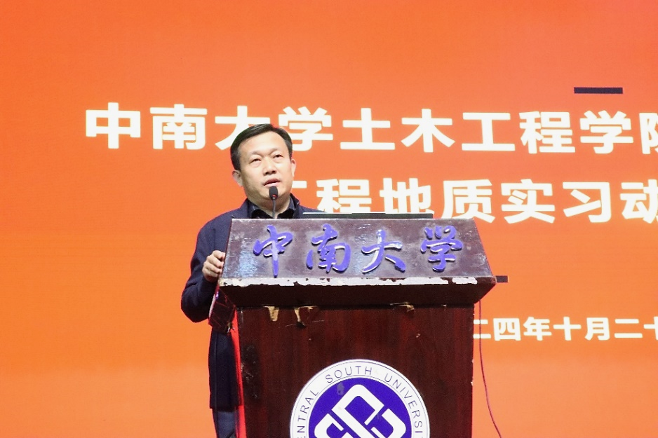 最后,学院副院长乔世范作总结发言。他指出工程地质实习是我院本科培养环节中不可或缺的一部分,学院精心组织、带队教师全程指导、学生全员参与,是非常珍贵的实践机会。叮嘱同学们要把安全放在第一位,外出严格履行请假手续,做到一切行动听指挥,认真完成各项要求。勉励同学们珍惜实习时光,在实习过程中多观察、多思考、多分析、多记录,切实锻炼工程实践能力,努力成长为堪当民族复兴重任的时代新人,并预祝本次工程地质实习取得圆满成功。