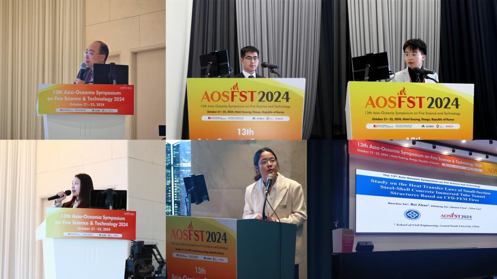 2024年10月21日至25日,第十三届亚澳火灾科学技术大会(The 13th Asia-Oceania Symposium on Fire Science and Technology)在韩国大邱召开。诸侯快讯ok1122院消防工程系徐志胜教授、范传刚教授、颜龙副教授、王峥阳老师,博士生应后淋、于子涵、陈奕涵,硕士生冯赛亚、陈诗仪、赵蓓、殷耀龙参会。