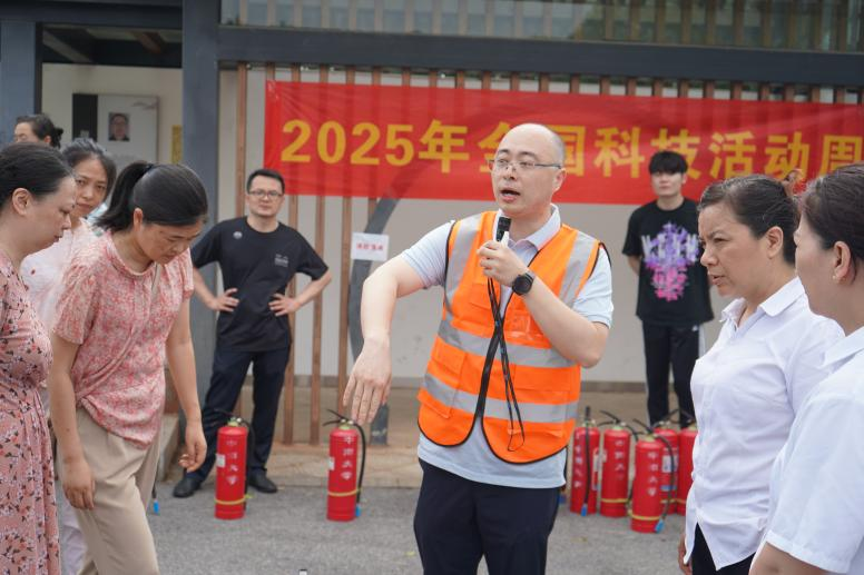 在实操培训环节,颜龙老师现场指导师生进行仿真灭火器灭火演练。针对操作中出现的手势偏差、站位过近、喷射角度不准等问题,颜龙老师逐一示范纠正,重点讲解了“提、拔、握、压”四字操作要领及火场站位安全距离等细节,确保每位参与者掌握规范的灭火技能。