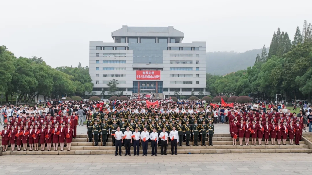 岳麓山畔,湘江水滨。气势恢宏的爱国歌曲旋律响荡在校园里,也响荡在每一位中华儿女的心头。慷慨的誓言诉说着学子的赤子之心,高昂的曲调吟诵着祖国的光辉岁月。七十六年风雨兼程,七十六年栉风沐雨,婉转的歌声中蕴藏着祖国筚路蓝缕的创业史,艰苦卓绝的奋斗史,也蕴藏着此时此刻所有中国人的满腔自豪之情。