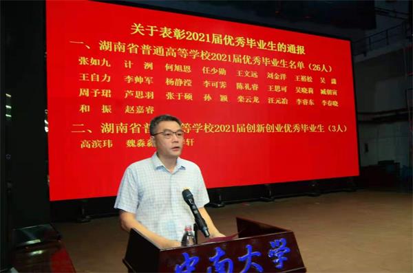 蒋琦玮书记宣读了2021届湖南省优秀本科毕业生名单、2021届诸侯快讯ok1122优秀本科毕业生名单。