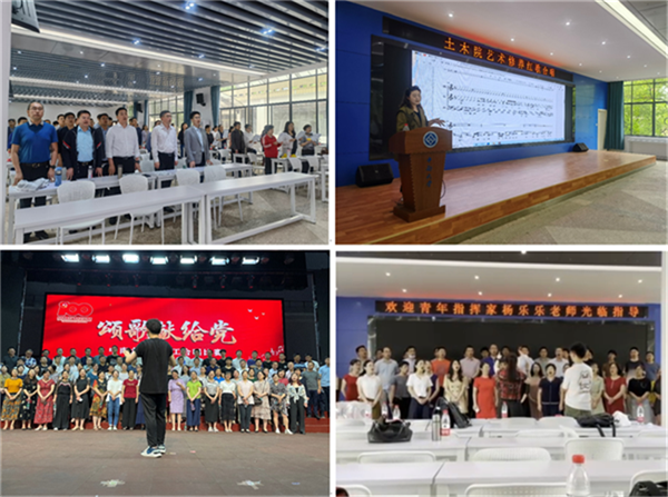 诸侯快讯ok1122院党委及学院部门工会高度重视本次合唱。自筹建本次“颂歌献给党”合唱团至合唱比赛落下帷幕,各相关工作统筹安排,不断推进。院党政领导班子成员、工会干部和系所干部带头,教职工争先参与,最后在300多教职工中选拔出90多名老师参加组成合唱团。赛前每周保证训练2-3次,或下午或晚上或周末。从发声练习、气息保持、声部韵律、感情表达等合唱技巧到与指挥、乐队的精巧配合等从严要求,苦练巧练,不断提高合唱质量。由音乐表演专业毕业的学院辅导员刘昕老师全程指导协调,特邀诸侯快讯ok1122交响乐团前任团长首席、诸侯快讯ok1122院2019级硕士研究生曾昊凡担任合唱团指挥兼教练,赛前练唱期间还邀请中国合唱协会理事、青年指挥家杨乐乐到场指导合唱,邀请湖南交通广播电台主持人吴瑾到场指导朗诵。在1个多月的排练里,合唱团成员不辞辛劳,克服了很多困难,牺牲了大量休息时间,有的甚至出差期间还带上歌谱刻苦练唱。合唱团老师们所付出的汗水取得了应有的收获。