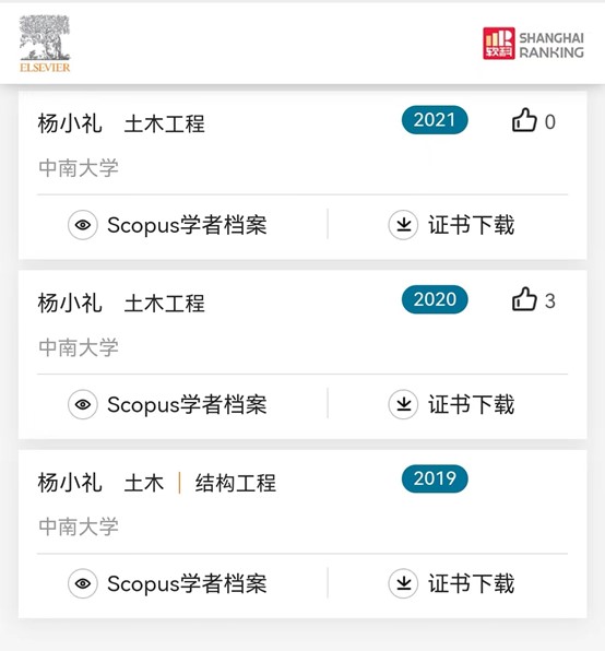 李显方、杨小礼2名教授入选中国高被引学者榜单充分体现了我院在土木工程、力学专业领域研究的重要性和前沿性,极大提升了我院科研团队在国内外的影响力,对学院的一流学科建设起到了重要的推动作用。