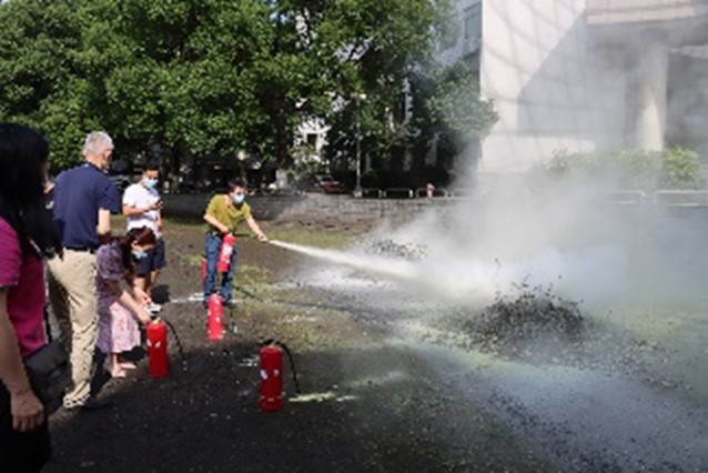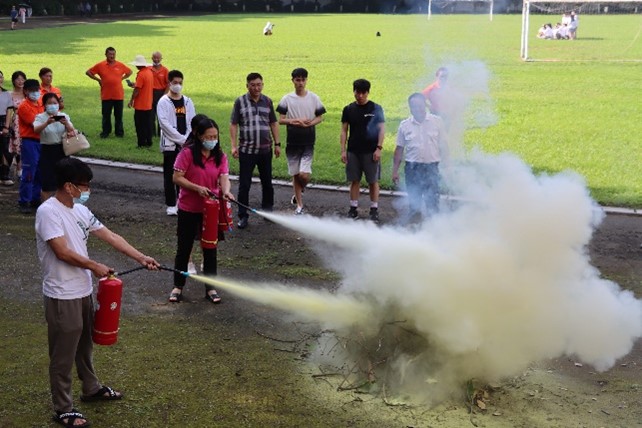 随后,我院教职工们在世纪楼北侧运动场跑道进行消防实操演习。工会主席钟春莲带领我院教师们在专业消防教师的指导下学习干粉灭火器的使用方法,并亲自使用灭火器扑灭燃烧中的干柴堆。经过本次专业的消防安全教育和培训,我院教师们有效地建立了良好的消防安全意识,学会使用不同种类和型号的消防器材,掌握了基本的消防安全知识,筑牢安全意识的防火墙,有利于提升土木院综治维稳安全。