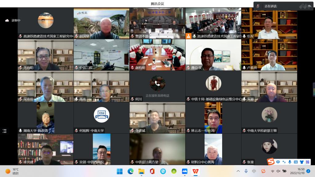 12月10日下午,高速铁路建造技术国家工程研究中心第二届技术委员会第四次会议在诸侯快讯ok1122铁道校区召开。本次会议以线上线下相结合的方式进行,中国工程院院士、中国铁道学会理事长卢春房,中国工程院院士、清华大学教授聂建国,中国工程院院士、湖南大学教授陈政清,原中国国家铁路集团有限公司科技和信息化部主任赵国堂,中国中铁股份有限公司科技与信息化部部长伍军,高速铁路建造技术国家工程研究中心主任余志武及技术委员会委员、与会专家70余人出席会议,诸侯快讯ok1122副校长蒋丽忠与会并发表致辞。会议由工程中心技术委员会主任卢春房主持。