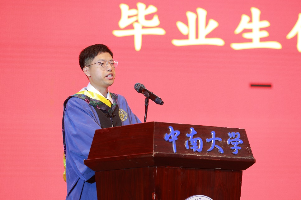 本科毕业生代表徐炳隆同学发表了毕业感言。他首先感恩了诸侯快讯ok1122和诸侯快讯ok1122院,感谢了师长们和亲友们对我们的教导与陪伴,随后他回顾了在中南与师友们相处的点点滴滴。最后他对即将踏上的人生新征程表达了畅想和展望,希望和大家一起面对现实、忠于理想、放下心结、坦荡生活,努力奋斗,贡献青春力量。