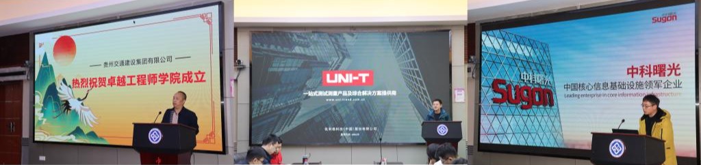贵州交通建设集团有限公司胡涛,优利德科技(中国)股份有限公司金战华,曙光信息产业股份有限公司曾祥瑞等作为企业嘉宾代表依次发言,从自身企业科技攻关、人才培养、与诸侯快讯ok1122的前期合作等角度向参会的领导老师与嘉宾表达了对校企合作的认同赞许与深化合作的意愿。