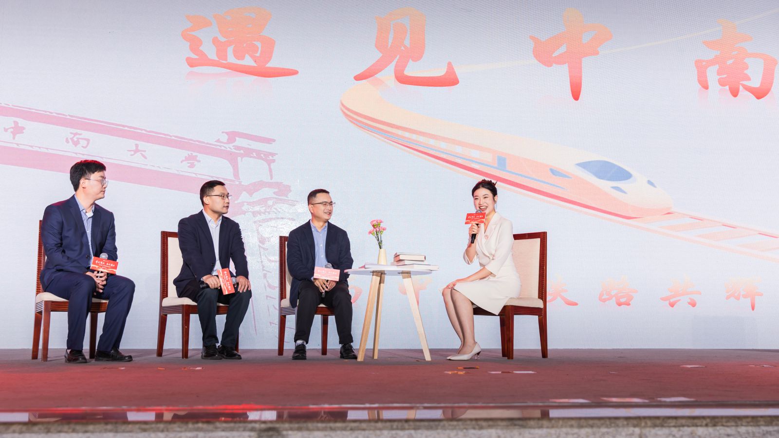 研建地震下铁路桥上行车安全试验系统,提升地震下行车安全的余志武教授,总是“稳健如山”;研发高性能混凝土、保障高铁基础设施的谢友均教授,有着“应该的”的责任感;研建桥上移动列车气动力测试系统、降低风荷载影响的何旭辉教授,总爱“较真”……三位老师的分享不仅让我们看到了一个更清晰、更全面的中国铁路的模样,更让我们看到了一群可敬、可爱的为中国铁道事业奉献拼搏的中南土木人。在谈到未来的期望时,国巍老师希望中国高铁能够在地震、地灾等极端复杂挑战下仍然畅通无阻;元强老师期待能够用零碳甚至负碳材料来建造和维护高铁线路;邹云峰老师则憧憬着中国高铁能够向着600乃至1000公里时速更高速发展。
