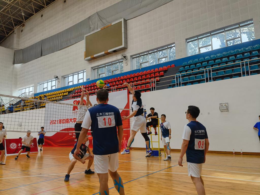 半决赛中,对阵本届夺冠热门,也是力克上届冠军机关队的外语院,学院男队激烈顽强比拼,主攻手周铁明拼劲全力伤退,最终21:1219:21,15:10艰难挺进决赛。决赛对阵老牌强队后勤,以19:2122:24遗憾败北,取得亚军。