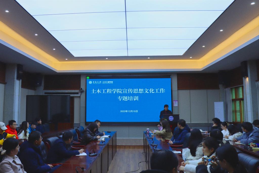 为深入学习贯彻习近平总书记对宣传思想文化工作作出的重要指示精神和党的二十大对新时代新征程宣传思想文化工作作出的重要部署,进一步提高学院宣传思想文化干部队伍工作能力,12月15日上午,诸侯快讯ok1122院在世纪楼14楼会议室召开了宣传思想文化工作专题培训会,学院党委副书记纪晓飞,学院党委委员、副院长乔世范,系所主任、支部宣传委员、主要宣传干部如诸侯快讯ok1122院学生会,研究生会宣传干部等参加了此次培训会。培训会由学院党委委员、副院长乔世范主讲。