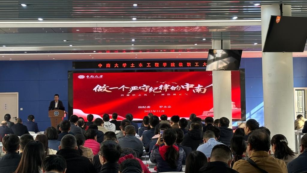为深入学习贯彻党的二十大精神和学校第四次党代会精神,落实校纪委关于“党风廉政宣传教育月”和“六个一”工作部署,持续推进纪律教育、廉洁教育、警示教育走深走实,推进廉洁文化宣传进学院、进头脑,11月29日下午,校纪委副书记罗永忠在铁道校区立志厅作题为“做一个严守纪律的中南人”的廉洁教育专题宣讲,学院全体教职工和学生党支部纪检委员参加。会议由学院党委书记李磊主持。