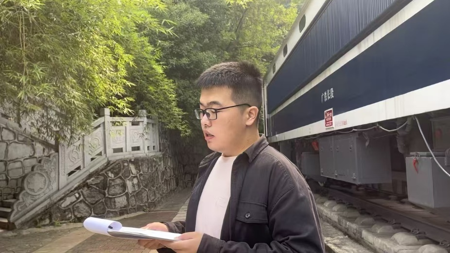 随后,由学生党员王金磊带领大家前往铁路园,参观三台大名鼎鼎的火车头,领略它们波澜壮阔的“前世今生”。“这台印有‘JS 1953’标识的机车来自内蒙古包头,‘JS‘代表建设型机车,‘1953’代表原长沙铁道学院于1953年成立…”随着娓娓道来的讲解,同学们纷纷上前触摸机身斑驳厚重的轮廓,感受其筚路蓝缕启山林的艰辛不易。“我们面前的这台‘东风4型1983’从北京来,‘1983’有两个含义,一是1983年蒸汽机车基本上退出历史舞台,二是感谢原长沙铁道学院83级的校友对铁路园落成提供的支持…”聆听的过程中,同学们仿佛亲身回到那个坎坷波折的年代,亲眼见到铁道学院的前辈们为了新中国铁路事业发展前仆后继,夜以继日地奔赴在钻研探索的道路上,让坚实的轨道越铺越远,越修越长。“SS3型电力机车即韶山3型电力机车,车身上的‘韶山’二字源于毛泽东的家乡,其字迹亦来自主席亲笔手书…”循着伟人的足迹,谛听时代的回响,共产党人的伟大精神不仅照耀了一段“遍地哀鸿满城血”的晦暗历史,亦点亮了我们“敢叫日月换新天”的意志与勇气。
