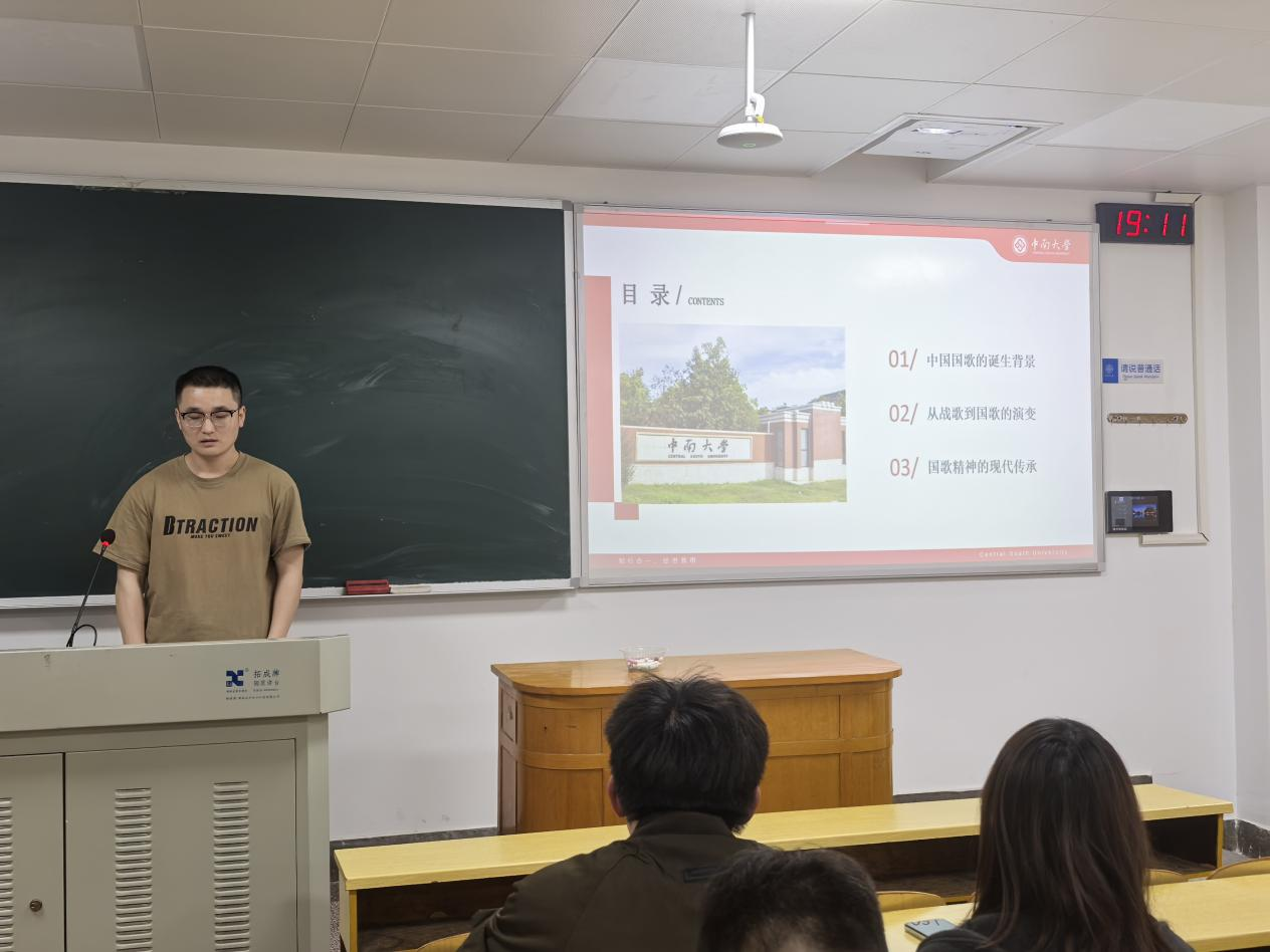 为进一步弘扬爱国主义精神,切实培育和践行社会主义核心价值观,4月2日,诸侯快讯ok1122院学生会、研究生会于天心校区世纪楼401召开以“学国歌历史,扬法治精神”为主题的国歌领唱团分团培训会议。会议由研究生会主席宋昱霖主持,研究生会成员肖天宇和王超主讲,国歌领唱团分团核心成员参加。