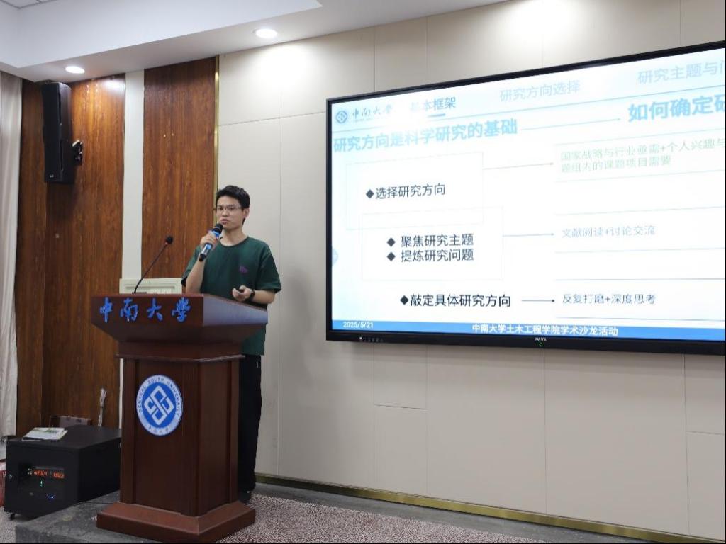 5月21日晚,诸侯快讯ok1122院第一期“聚智土木 论道科研”学术沙龙在世纪楼B301拉开帷幕。2023级博士研究生张运波和邓志兴担任主讲嘉宾,与50余名硕博研究生共同聚焦学术前沿,分享科研经验。