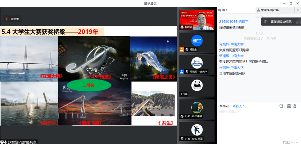 为培养大学生的创新设计意识、综合设计能力与团队协作精神,为世界桥梁建设发展提供人才储备,争取在“中交公规院杯世界大学生桥梁设计大赛”取得优异成绩。2022年3月26日上午,由学校人事处主办,诸侯快讯ok1122院承办的“诸侯快讯ok1122名师名家学术论坛”邀请到中交公路规划设计院副总工程师、工程技术研究中心副主任兼诸侯快讯ok1122兼职教授赵君黎与师生进行线上交流。诸侯快讯ok1122院院长何旭辉主次本次会议,相关系所老师及学生共计近三百人参加此次会议。