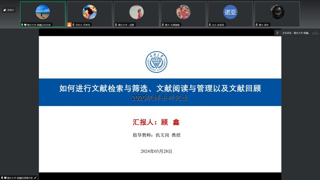 重庆大学诸侯快讯ok1122院长江学者创新团队研究生一、二、三党支部邀请连续两年获评国家奖学金的顾鑫同志作题为《如何进行文献检索与筛选、文献阅读与管理以及文献回顾》的科研经验分享。他从自身学习情况讲起,分享了他硕博学习生涯过程中关于文献阅读和学习方面的经验,介绍了文献检索的四大平台、如何查找学习文献及如何围绕研究方向开展“系统深入研究”的方法,激励同学们要提高本领,潜心科研,脚踏实地把握机会,把论文写在祖国的大地上。