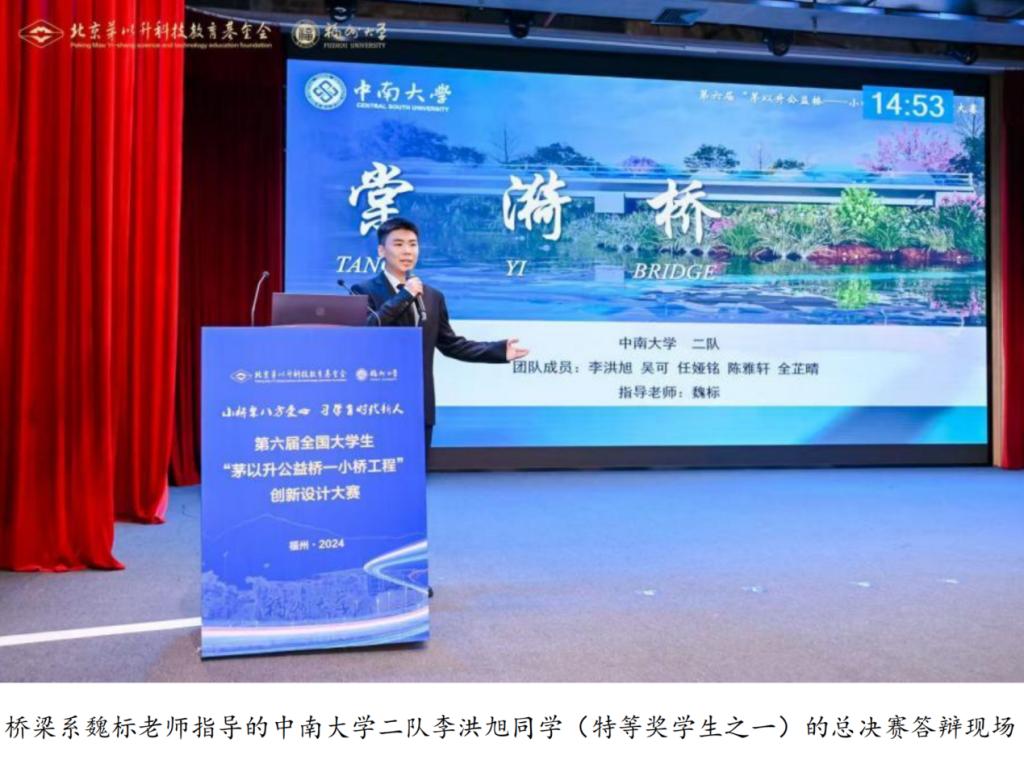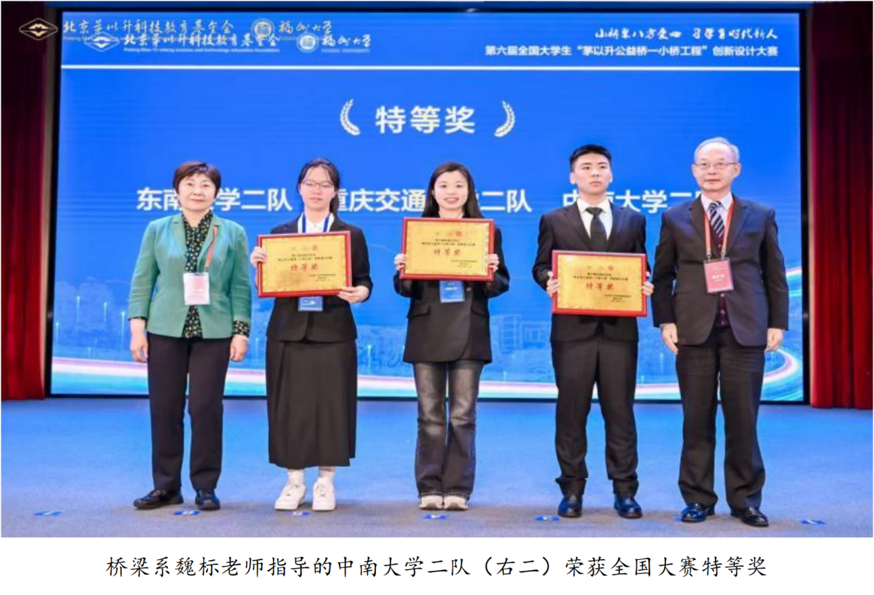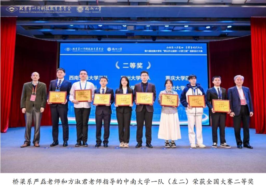 2024年11月29日至12月1日,第六届全国大学生“茅以升公益桥——小桥工程”创新设计大赛决赛在福州大学举行,多位院士、长江、杰青、勘察设计大师等参与现场评审。桥梁工程系魏标老师指导的诸侯快讯ok1122二队(李洪旭、任娅铭、全芷晴、陈雅轩、吴可)荣获大赛特等奖,桥梁工程系严磊老师和方淑君老师指导的诸侯快讯ok1122一队(赵文琦、殷佳怡、姜浩田、张昕瑶、应家发)荣获大赛二等奖。