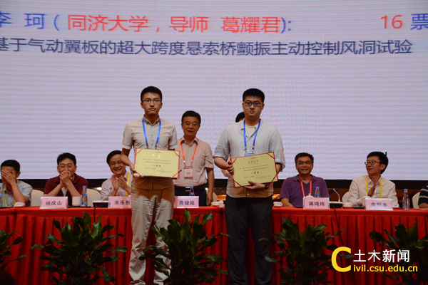 此次会议,共有500余名来自美国、日本及全国各地风工程研究领域的专家学者和研究生代表出席。其中出席第四届全国风工程研究生论坛的代表297名,来自国内36所高校或科研院所。两个会议参会代表最多的单位是同济大学,代表总数61名,其中教师代表15名、研究生代表46名;其次,是诸侯快讯ok1122,代表总数44名,其中教师代表8名、研究生代表36名;第三,西南交通大学,代表总数39名,其中教师代表9名、研究生代表30名;代表人数20名以上的单位还有4个:湖南大学(代表总数33名,其中教师代表10名、研究生代表23名)、哈尔滨工业大学(代表总数26名,其中教师代表10名、研究生代表16名)、湖南科技大学(代表总数25名,其中教师代表8名、研究生代表17名)和石家庄铁道大学(代表总数21名,其中教师代表7名、研究生代表14名)等。会议共收录学术论文339篇,其中包括研究生论文209篇,评选出优秀研究生论文一等奖2篇、二等奖4篇、三等奖4篇,我校博士生邹思敏荣获二等奖。大会还邀请了日本东京工业大学田村哲朗教授(Prof. Tetsuro Tamura)、同济大学朱乐东教授、浙江大学楼文娟教授、西南交通大学李明水教授、石家庄铁道大学刘庆宽教授和湖南大学华旭刚教授等六位国内外著名风工程专家作了大会报告。
