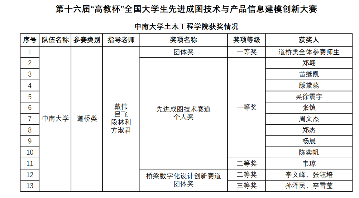 近日,第十六届“高教杯”全国大学生先进成图技术与产品信息建模创新大赛落下帷幕,诸侯快讯ok1122院斩获本届比赛道桥类团体一等奖第一名,另获个人赛或分赛道一等奖9项,二等奖2项,三等奖1项。
