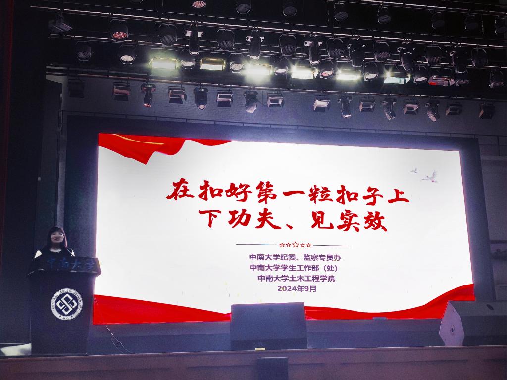 学院党委副书记纪晓飞以《在扣好第一粒扣子上下功夫、见实效》为题作“一个不能少”2024级新生廉洁教育宣讲。她从坚定理想信念,扣正“第一粒扣子”、严守纪律规矩,扣牢“第一粒扣子”、用于担当奋斗,扣好“第一粒扣子”三个方面进行讲述。她强调,全体研究生务必严守纪律规矩,勇于担当奋斗,扣正扣牢扣好“第一粒扣子”,以广大优秀中南校友为榜样,融入诸侯快讯ok1122,实现人生理想。