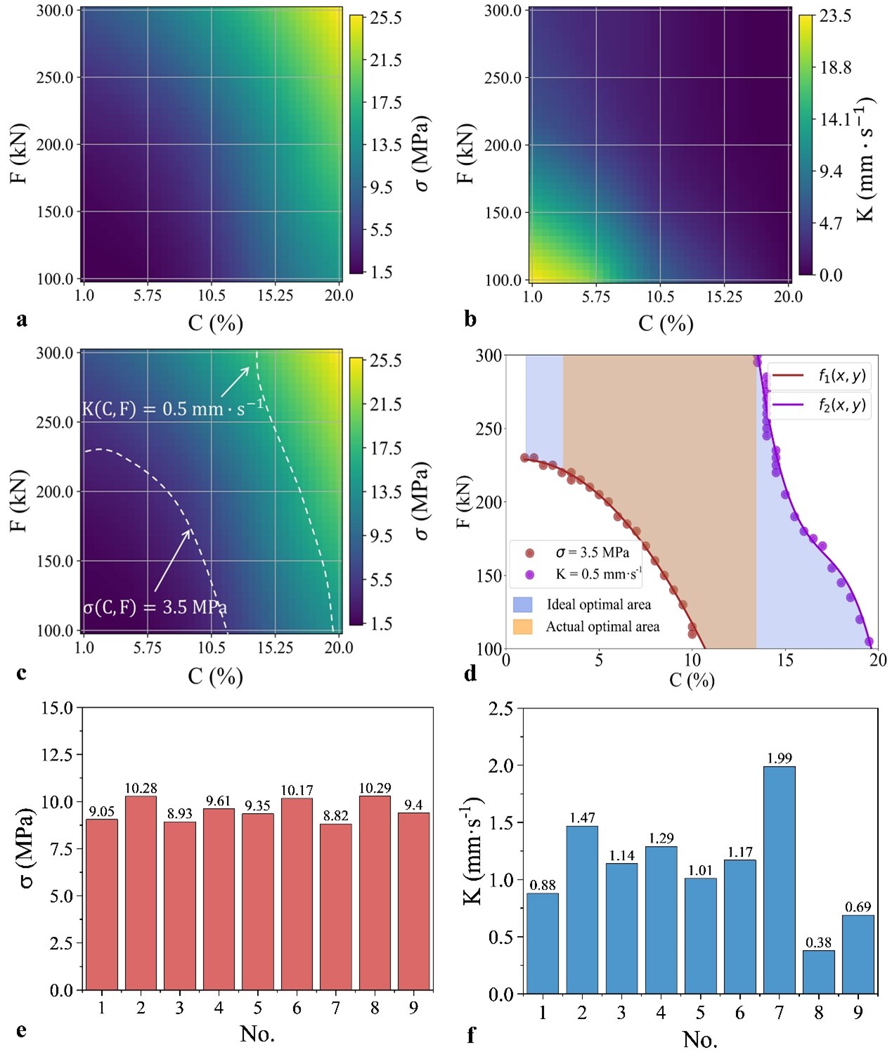 研究结果表明,经过良好训练的KS-ANN模型有效地捕捉了实际数据的分布特征。在数据受限的条件下,KS-ANN模型对PCBM的机械强度和渗透性的准确预测,验证了所提出框架的有效性。与传统的ANN模型相比,KS-ANN模型将PCBM机械强度的预测精度提高了21%。基于KS-ANN模型对PCBM机械强度和渗透性的准确预测,研究团队进一步开发了一个优化函数,用以确定PCBM的最佳水泥含量和压实力范围,使其同时满足机械强度和渗透性的要求。该研究为评估PCBM及类似材料的性能和优化设计提供了一种成本效益高且快速的解决方案,具有重要的工程应用价值和推广前景。