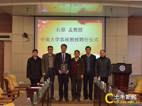 2015年12月11日上午,日本东京大学土木工程系主任石原孟教授应邀来访我校,在铁道校区世纪楼14楼会议室现场受聘为诸侯快讯ok1122客座教授。土木院院长谢友均、党委书记蒋琦玮、副院长何旭辉、副院长蒋丽忠、桥梁系主任戴公连、力学系主任李东平等老师参加了会议。