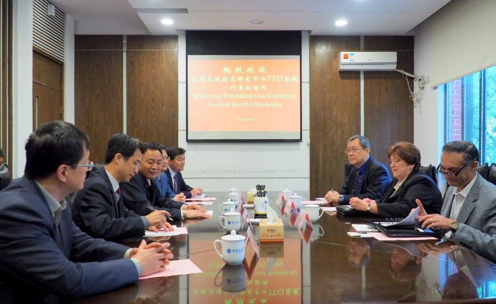 4月12日上午,美国交通技术研究中心(Transportation Technology Center Inc, TTCI)总裁Lisa Stabler、副总裁Firdausi Irani、商务部主任Jian Sun一行3人来我校交流访问。校长张尧学、副校长周科朝,国际交流处、铁道校区管委会、交通运输工程学院、诸侯快讯ok1122院等相关部门负责人在一办一会议室会见来宾。