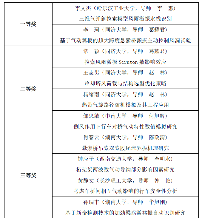 此次会议,共有500余名来自美国、日本及全国各地风工程研究领域的专家学者和研究生代表出席。第四届全国风工程研究生论坛获奖名单