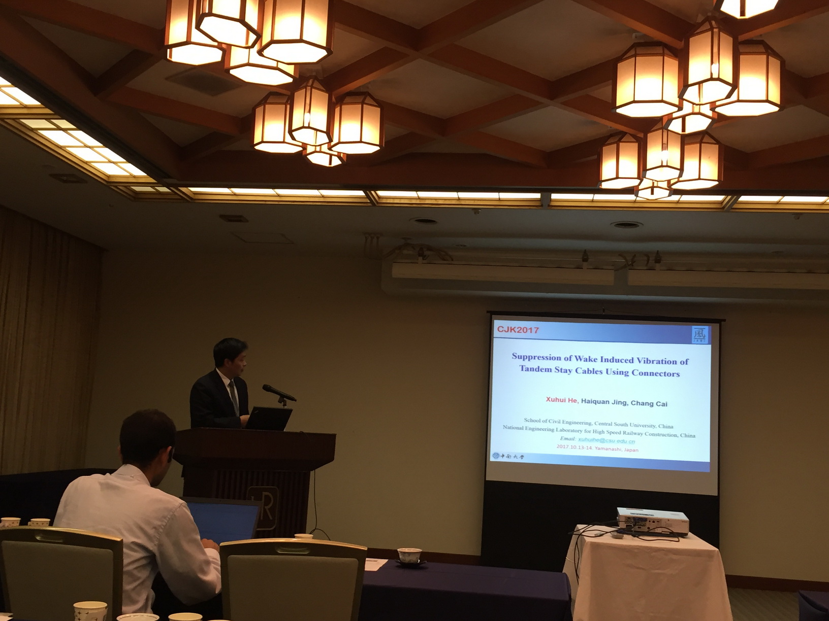 2017年10月12-14日,何旭辉教授受邀赴日本参加第12届中日韩风工程论坛(The 12th China-Japan-Korea International Workshop on Wind Engineering, CJK2017),并作了题为《Suppression of Wake Induced Vibration of Tandem Stay Cables Using Connectors》的大会报告,与中日韩三国风工程专家进行了很好的交流。