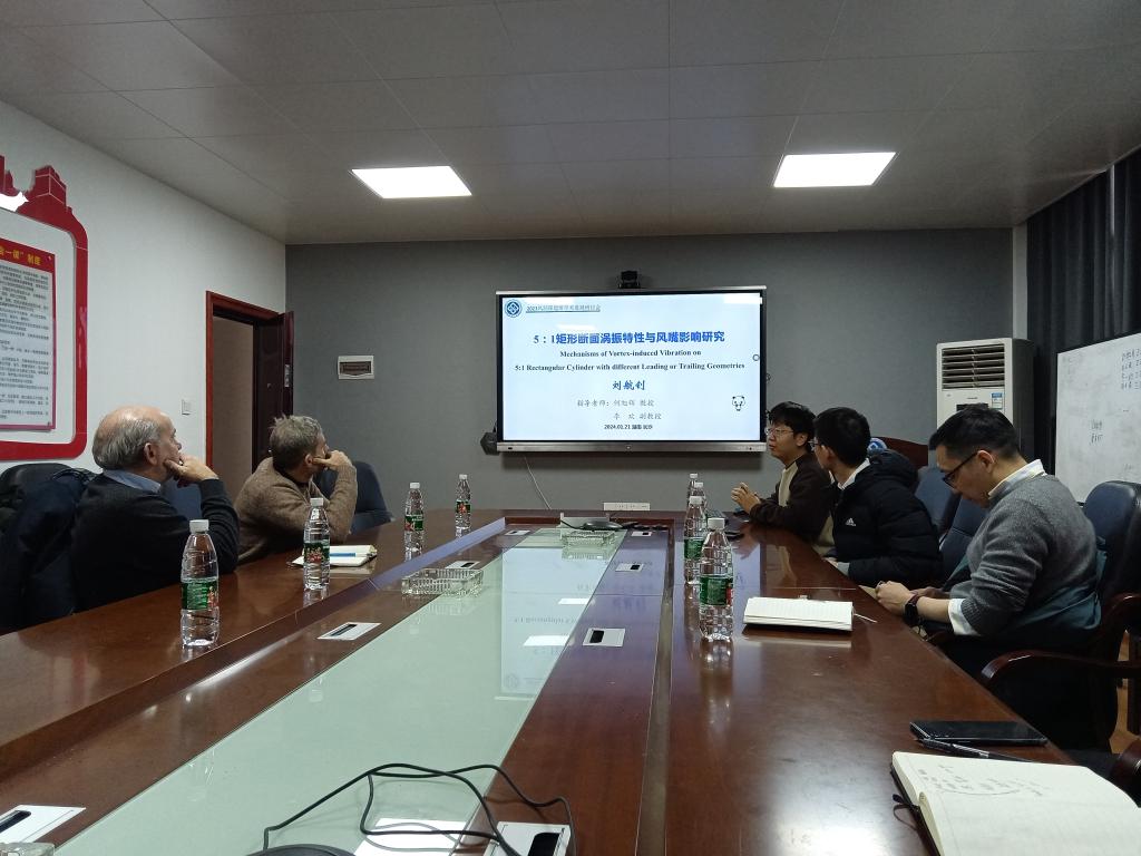 随后,严磊副教授和刘航钊同学分别介绍了香港青龙大桥抗风项目的研究进展和矩形断面涡振特性与风嘴影响,双方就相关问题展开了深入的探讨。Gianni Bartoli、Claudio Mannini教授表示对所介绍的研究非常感兴趣,同时高度赞赏了中心的试验平台以及相关研究成果。