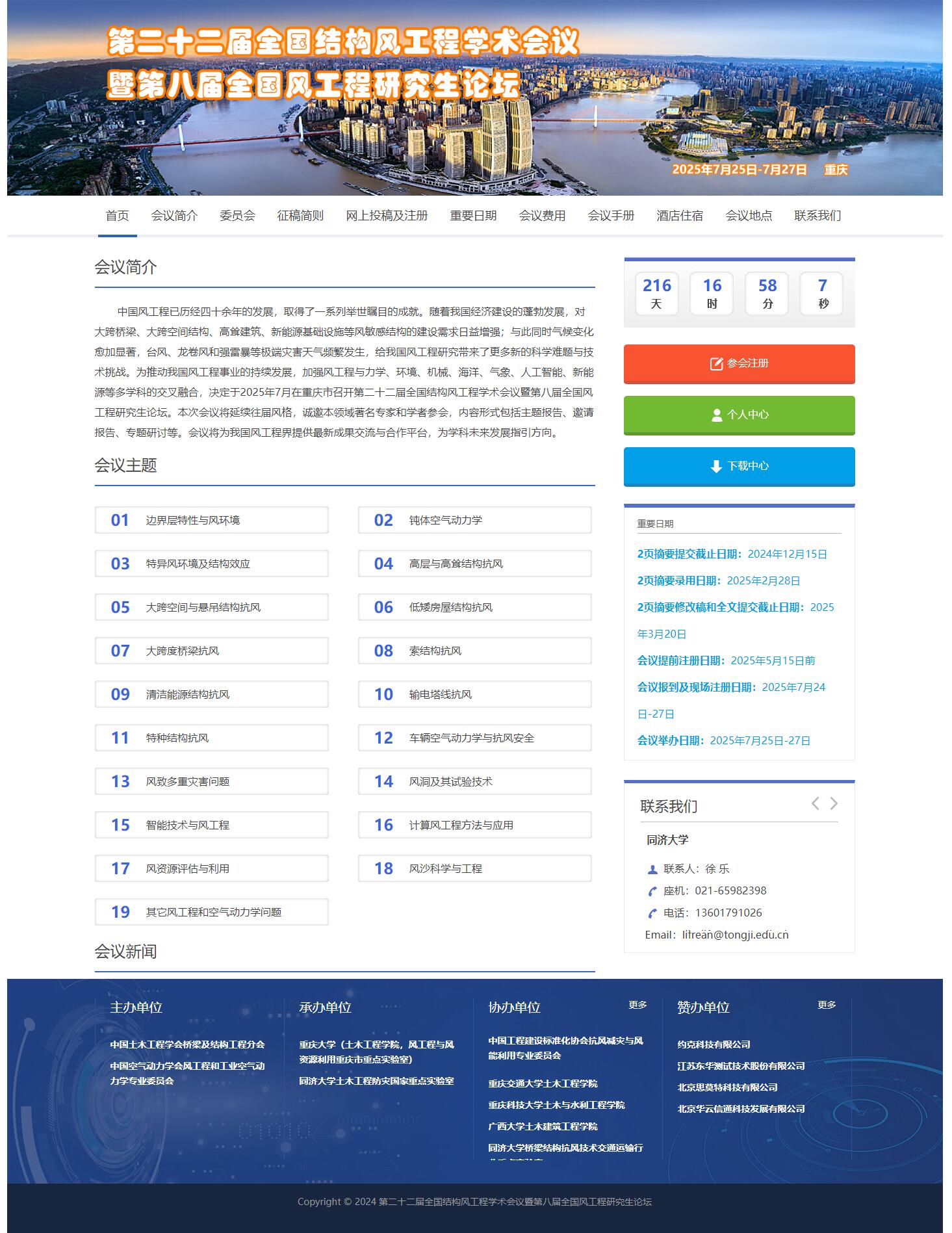 第二十二届全国结构风工程学术会议暨第八届全国风工程研究生论坛将于2025年7月25日至27日在重庆举办。