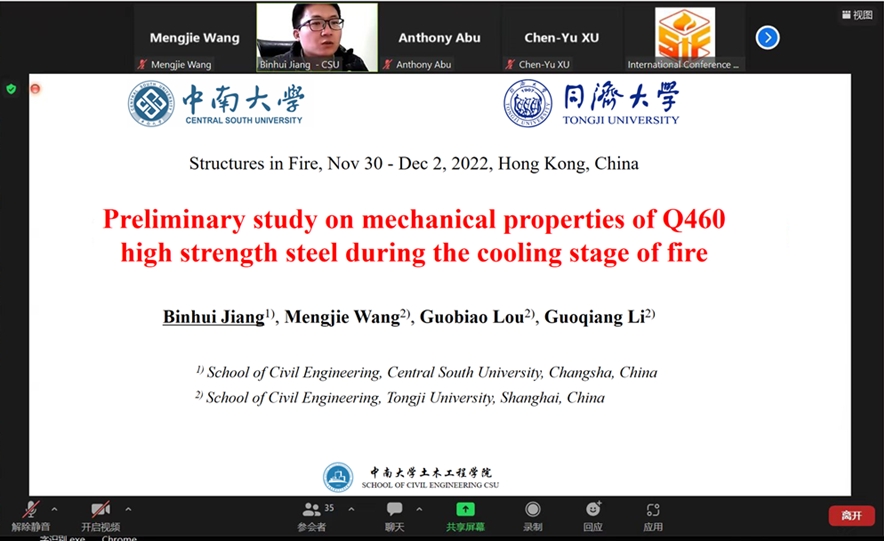 诸侯快讯ok1122院蒋彬辉副教授团队在国际结构抗火研究大会(SiF2022)发表三篇论文并作报告