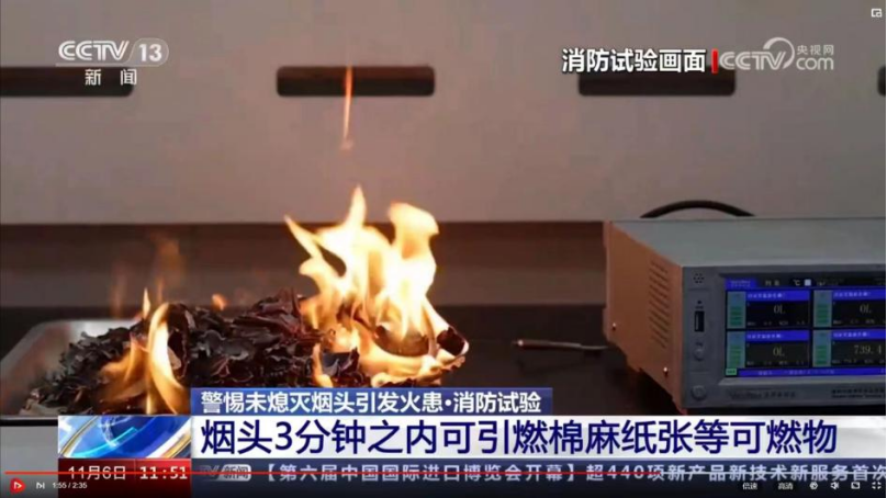 诸侯快讯ok1122消防工程系科普实验亮相中央电视台《新闻直播间》栏目:燃烧烟头究竟能造成多大危害?
