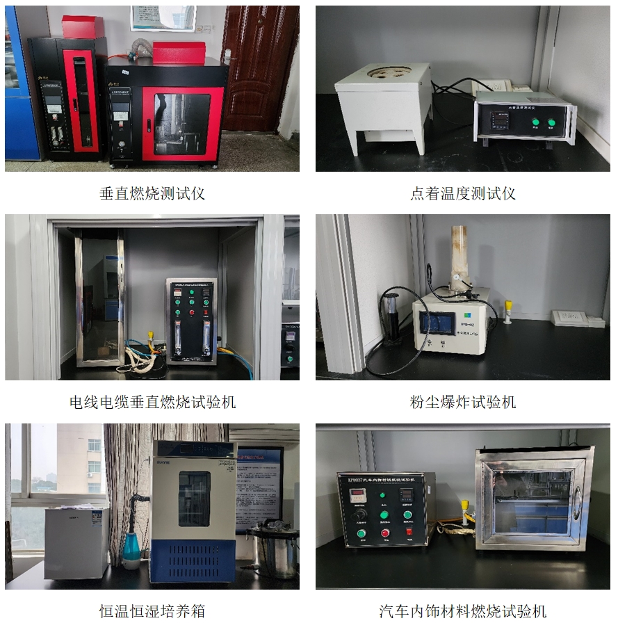 垂直燃烧仪、点着温度测试仪、电线电缆垂直燃烧试验机、粉尘爆炸试验仪、恒温恒湿培养箱、汽车内饰材料燃烧试验机、汽车内饰材料燃烧测试仪、粉末压片机、傅里叶红外光谱仪、热重分析仪、自动开口闪点测定仪、氧指数测试仪