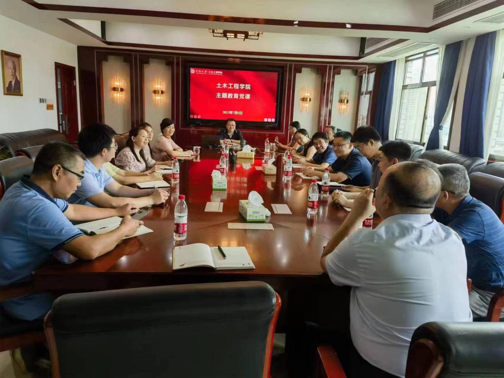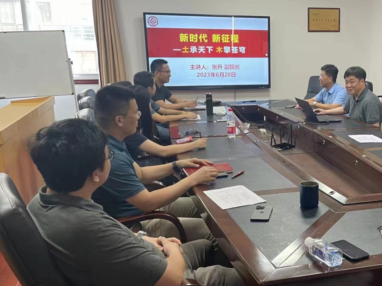院党委书记蒋琦玮以“土承天下,木擎苍穹——以建设教育强国为己任”为主题讲授专题党课,他从党的二十大主题入手,引用了习近平总书记关于深入实施科教兴国战略、加快建设教育强国的相关论述,结合理论学习和实践调研情况,指出学院要面向国家重大需求,弘扬科学家精神,传承科学家精神,聚天下英才,强调坚持党建引领,坚持教育、科技、人才一体化发展;坚持引育并举,打造高层次人才队伍与创新人才梯队;对接国家重大战略,强化有组织科研,持续提升科研创新能力;强化有组织社会服务,深化政产学研用全方位合作。激励我院教师坚持不懈用习近平新时代中国特色社会主义思想铸魂育人,坚持为党育人,为国育才,把服务国家作为最高追求,以将我院土木工程建设成为国家一流学科为目标,瞄准世界科技前沿和国家重大战略需求,主动超前布局、有力应对变局、奋力开拓新局,不断提升原始创新能力和人才培养质量。踔厉奋发,勇毅前行,奋力推进学院事业内涵式高质量发展。