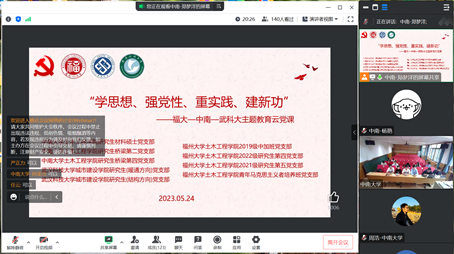 诸侯快讯ok1122院2021级辅导员、研材料硕士党支部书记杨倩,桥梁系青年教师、研桥梁第四党支部书记周浩,研桥梁第二党支部书记郑梦洋;福州大学诸侯快讯ok1122院2021级研究生辅导员、研究生第五党支部书记黄哲,2022级研究生辅导员、研究生第四党支部书记李彬彬,2019级本科生辅导员、中加班党支部书记童莹芳,青马班党支部班长祁湘平、董靖怡;武汉科技大学城市建设学院研究生结构方向、暖通方向党支部书记赵晓悦、刘香妤及各支部全体党员参会,会上进行了主题教育理论学习与党支部建设经验交流。