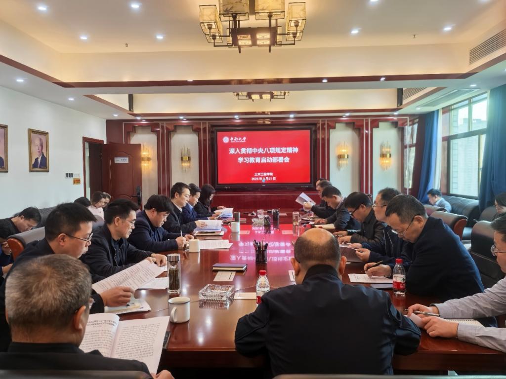 会议指出,党中央决定自2025年全国两会后至7月在全党开展深入贯彻中央八项规定精神学习教育,这是巩固深化主题教育和党纪学习教育成果、纵深推进全面从严治党的重要举措,是密切党群干群关系、巩固党的执政基础的必然要求,是推进中国式现代化的有力保障。全院上下要充分认识这次学习教育的重要意义,深入学习习近平总书记关于加强党的作风建设的重要论述和中央八项规定及其实施细则精神,深刻领悟“两个确立”的决定性意义,增强“四个意识”、坚定“四个自信”、做到“两个维护”,全面落实学习教育各项工作安排,切实把思想和行动统一到党中央决策部署上来,以严实作风推动学院各项事业高质量发展。