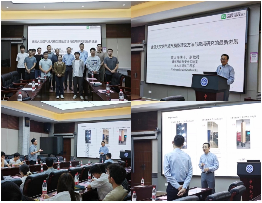 2023年10 月18 日上午,加拿大舍布鲁克大学土木与建筑工程系戚大海副教授于诸侯快讯ok1122铁道校区世纪楼14楼会议室作汇报,戚大海副教授汇报的主题为建筑火灾烟气缩尺模型理论方法与应用研究的最新进展。他首先介绍了一种全新的高层建筑火灾烟气流动缩尺模型,通过考虑火灾烟气与边界之间的热交换,提出准确性更高的弗劳德-斯坦顿建模方法。其次,戚大海副教授还提出了太阳能电板火灾烟气流动缩尺模型,以及一种新的氦相似理论和太阳能电板火灾烟气扩散风洞试验的标度方法,并介绍了建筑一体化光伏双层幕墙火灾烟气扩散机理,提出了一种经济、安全、实用的模拟方法。汇报结束后,与会师生与戚大海副教授展开交流。部分师生结合自己的实验课题和科研经历向戚大海副教授提出疑问,戚大海副教授均细致回答,与师生互通有无。