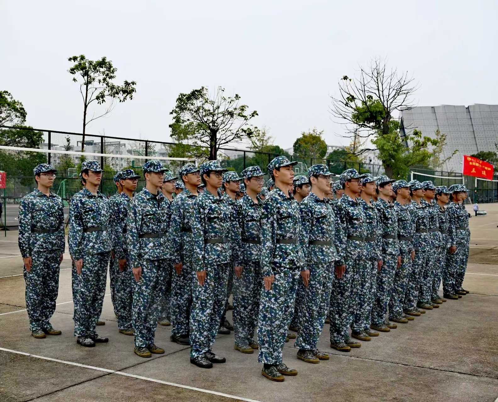 今天的天气仿佛也要为我们这支军训队伍表现出不同的情感。上午,浓密的云层笼罩了整个天空,显得有些低沉。但在下午时分,阳光终于挣脱云层的束缚,洒在我们的肩头,让整个军训场充满了温暖...
